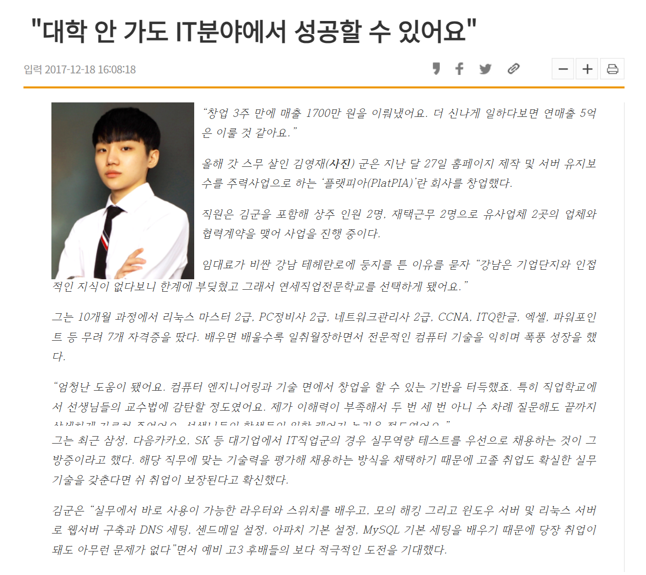 너무나 대단하신분 같은것이 옛기사 2017년도에도 플랫피아 라는 회사를 창업한 기사가 있더군요.