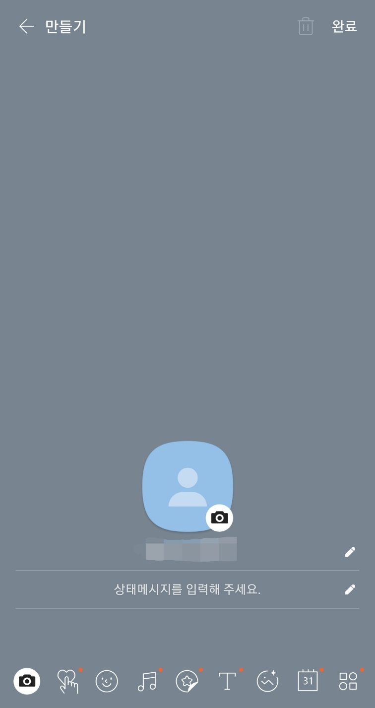 다. 카카오톡 멀티프로필 만들기를 클릭하시면 아무것도 없는 회색바탕화면의 프로필메인화면이 나오며 여기서 취향것 만들어 주시면 됩니다.