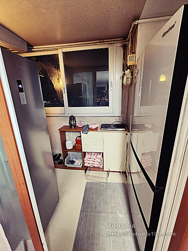 근데 이게 또 슬림형이라 앞뒤 길이가 얇아서 베란다에 딱 들어갔고요.