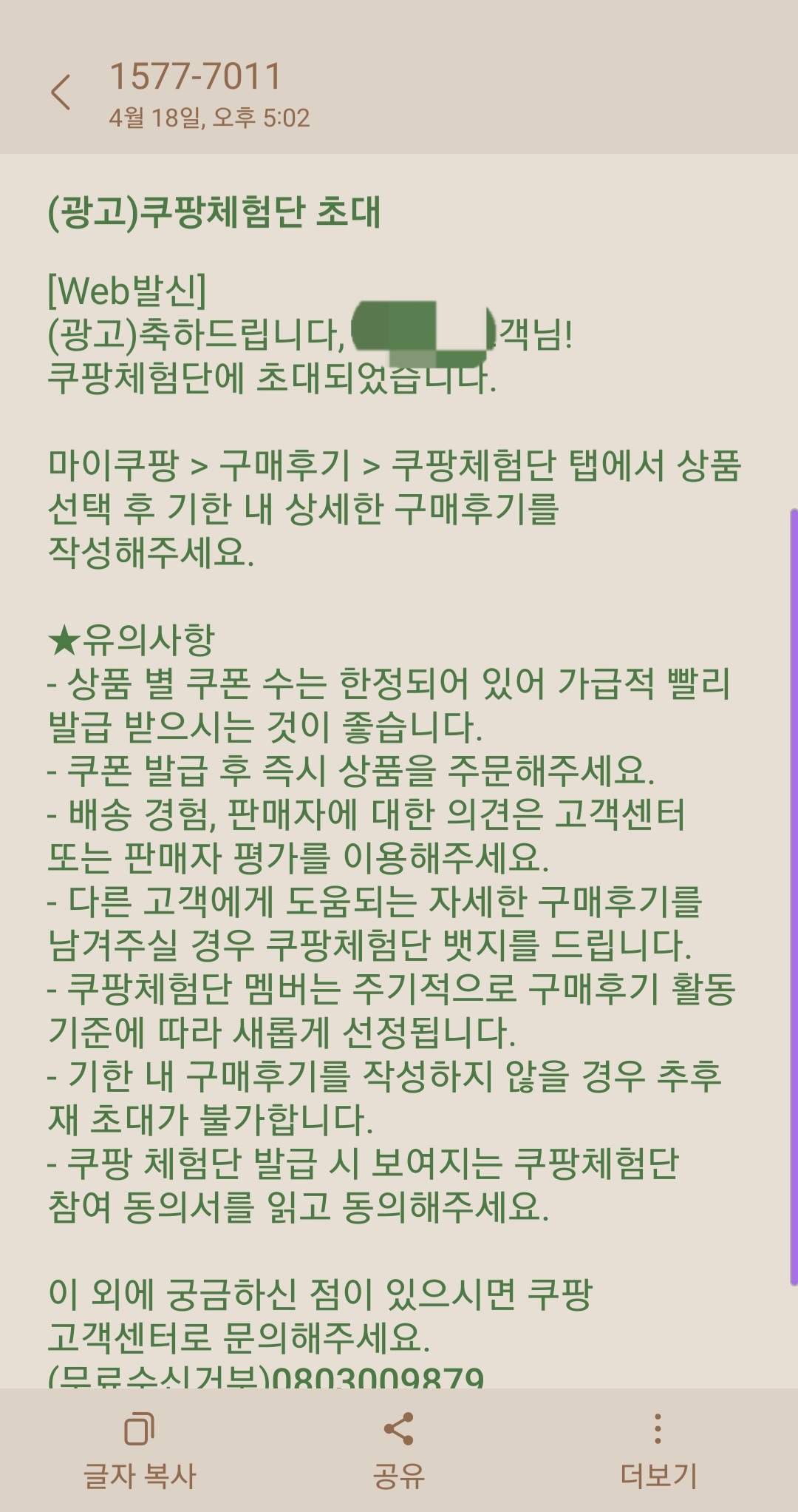 쿠팡수신설정을 해야 쿠팡체험단에 초대될 수 있어유