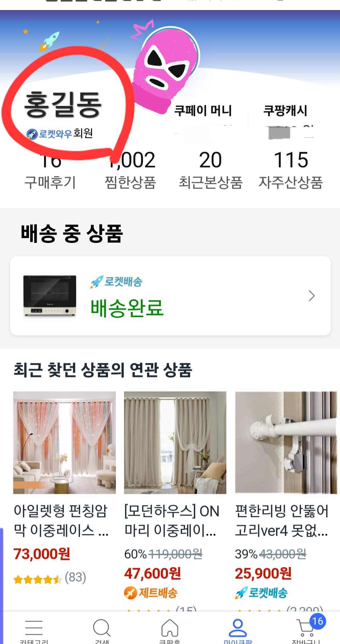"마이쿠팡" 메뉴로으로 들어 가시면