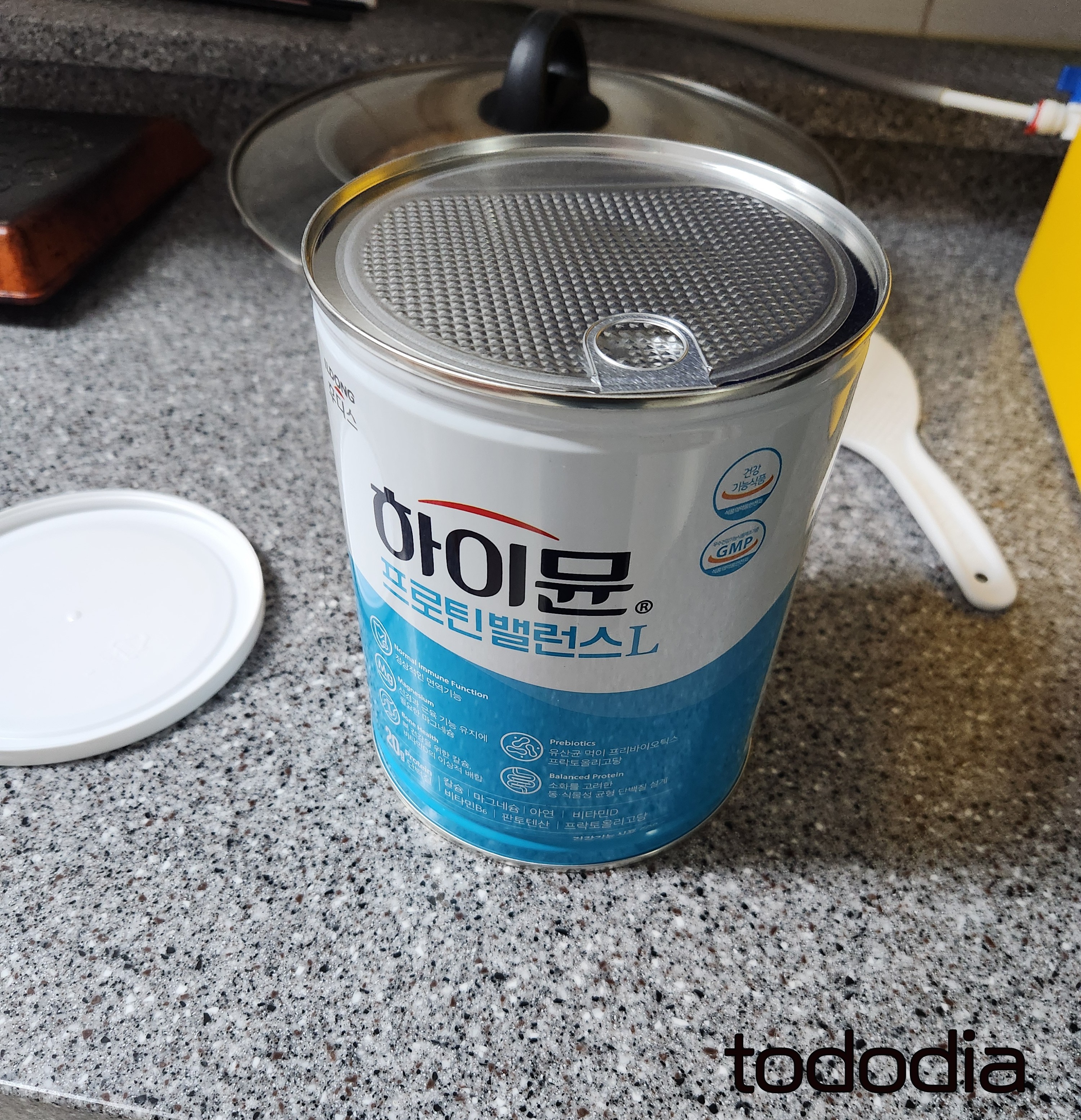 겉보기엔 분유통처럼 생겼어요.