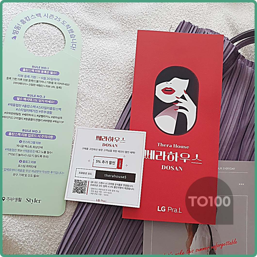 LG 프라엘 더마 쎄라하우스 이용과 이벤트 프로그램 안내의 리플렛과 5%쿠폰입니다.