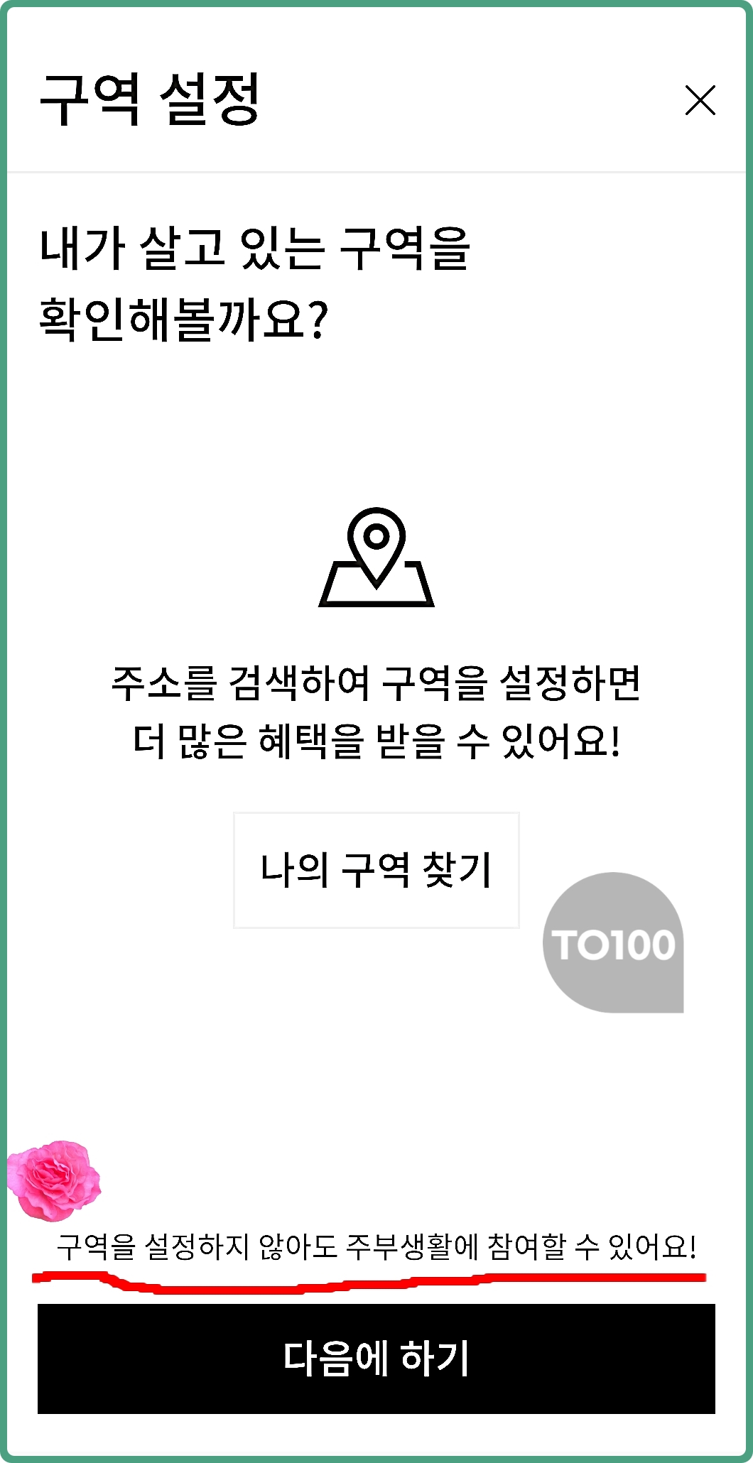 2. 구역설정을 한다. (안해도 홈캉스백 받을 수 있다)