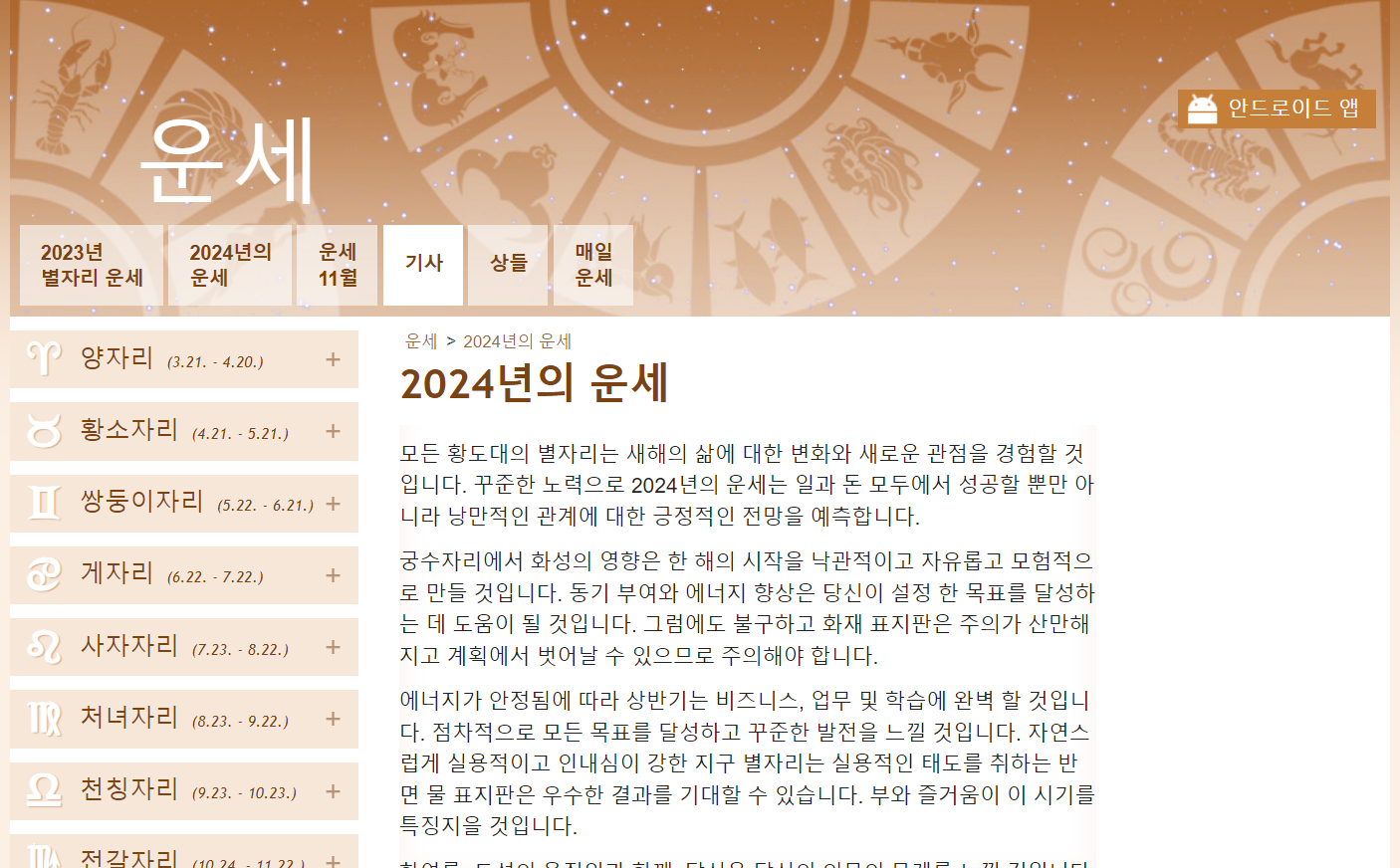 HOROSCOPES 운세 사이트